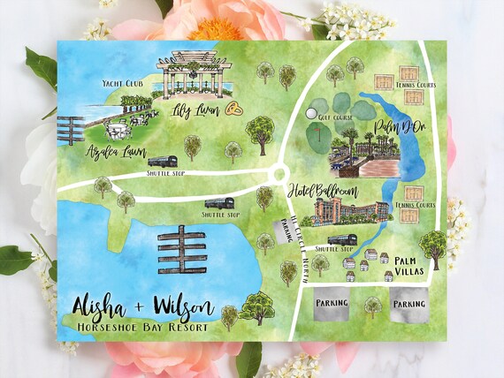 Custom Watercolor Wedding Map Resort & Hotel Map Etsy Finland