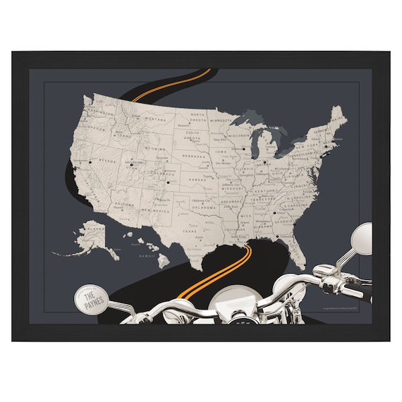 Personalized Motorcycle USA Push Pin Travel Map, Motorcycle Rider